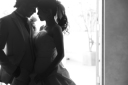 座りの写真とおふたりは同じ位置のままで落ち着いたポージングに、扉を閉めて光を調整&構図を変えることでイメージチェンジ。