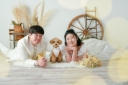 白を基調としたスタジオで手を繋いで撮影しました…♡