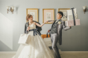ル・センティフォーリア天保山の披露宴会場は白を基調としている為、カラードレスが映えます!広い会場を使ってスタジオでは出せない奥行き感のある写真が撮れます◎