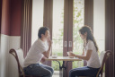 こちらは、結婚式ではご親族の方が控え室として使用されているお部屋でございます。シーンプラス大阪では、その青い壁を活かし撮影のワンシーンとして使用しております!