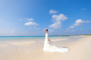 真っ白な砂浜の上を、お二人で散歩。自然に歩いてるだけで絵になります!