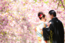 モダンで可愛らしい色打掛で撮影されました♡バックのイチョウの木の色ともマッチしています♪