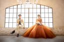 シャンデリアの下でのロマンチックな一枚に仕上がりました♡背景のシンプルな色味にお二人の鮮やかな衣装がとても映えています♪