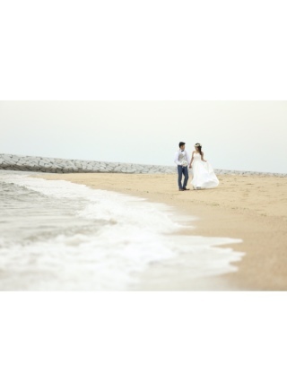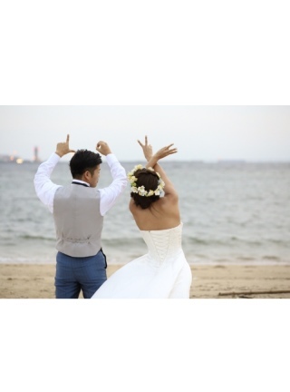 前撮りは成人式くらいしかしたことがなく、ロケーションフォトは人生で初めてでした。2人が大好きな海での写真を希望していて、撮影中はどんな感じになるのかなと不安もありましたがわくわくしてました。1ヶ月くらいで最初にデータが届いたのですが、夕方に撮ったのに晴天の昼間に見えるとても美しい仕上がりで想像以上で感動しました。他にも和装でも撮りましたが、そちらも和の雰囲気を全面に出して頂いて希望通りの写真撮影ができました。