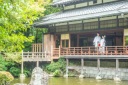 色打掛の赤が映える、日本庭園。緑の中に、赤がとてもよく映えました^^