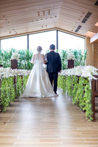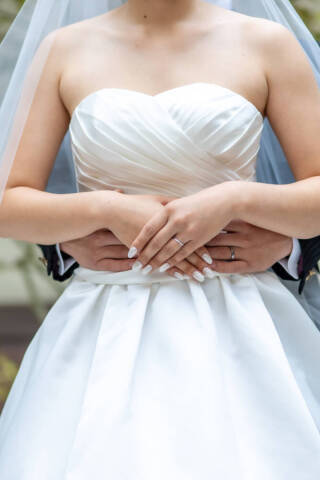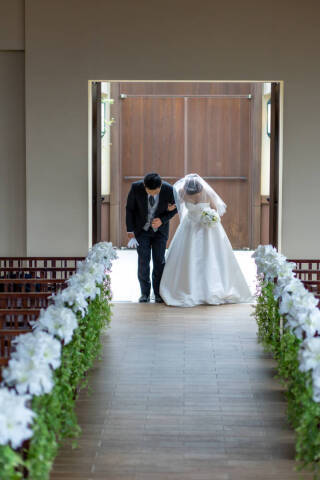 新郎新婦が向かい合って微笑みあう写真が一番気に入っています。スタッフの皆さんが和ませてくれたおかげで、自然な笑顔でした。