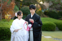 日本庭園でご家族皆様の祝福を受けて笑顔のお2人です♪