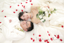 視線の先にお2人の気持ちを表すハートの形を手で表現して頂きました!とっても綺麗なハートになりました(^^)いつまでもラブラブで仲良しのおふたりでいて下さいね~♪