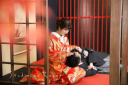 ご新婦様の色打掛の赤色とご新郎様の袴の黒色のお衣装がとても華やかでお似合いなおふたり!!縁側でのシーンも目を引きますね!大人な雰囲気があって素敵です(*^^*)