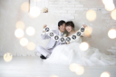 和装に挑戦!!白むくに綿帽子の姿が黒の背景にとても写真映えしていて素敵♪♪なんて似合っていらっしゃることでしょう!!!きりっとした表情で、ご挨拶とともにパチリ♪
