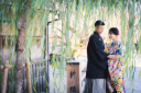 照れてしまいますが、やっぱり相合傘って素敵。ロケーション場所もあって趣のある一枚に。