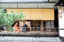 いつもなら人が多過ぎてこここそ絶対撮れないショット、雨予報さまさま。渡月橋の上ではじける二人。決して人は止めたりしてません。いませんでした!!(イエモン風)