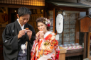 柳が風に揺れる様。しっとりとした雰囲気。新郎様のお洒落なハットはお嫁さんからのプレゼント