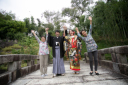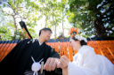 折り鶴を持ちながら正座での撮影。お嫁さん絶妙なバランスを保ってました。w