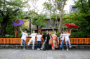 朝の優しい光で楽しく撮影します。衣装がとても映えます。