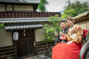 白無垢にお着替えしてあざらし和室で撮影。後ろのハートの窓からお母さん二人とも飛び出してきてますよ。本当に楽しそうなご家族でした。