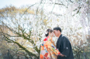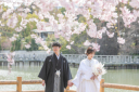 琵琶湖疏水にも春が来ました。お茶目な新郎様に、新婦様もおもわずにっこり。