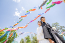 和傘をさすと、ひきしまりますね。お二人のポーズ、決まってます!