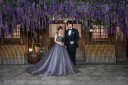 淡いお花に囲まれたおふたり柔らかい空気感を創り出す