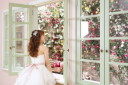 ロングベールをなびかせて洋館の大扉を開けるこちらのシーンは人気です!バックが華やかなプリンセスラインのドレスが栄えます♪