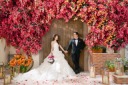 新郎様から新婦様へお花のプレゼント。背景の一面のお花が幸せを華やかに演出します♪