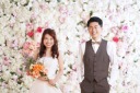 仲睦まじく二人でパシャリ☆たくさんのお花がお二人の幸せを引き立てます