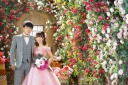 明るいお花に囲まれたお二人の飛び切りの笑顔がとっても素敵な一枚です♪