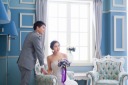 こちらは旦那様の光沢のあるブルーのタキシードが背景とのコントラストで良く映えています!