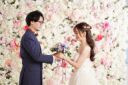先ほどと奥様の持つ花束の色が変わり、旦那様のタキシードも変っています。様々な色を楽しめるのも当スタジオの醍醐味ですね!
