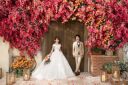 シャンデリアの温かな光がお二人を優しく包み込みます。新婦様の優美なドレスが際立ってます。