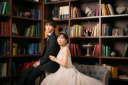 優雅なひとときを感じさせる邸宅の雰囲気。お二人のホワイトの衣裳が、シーンにぴったりと調和していますね。