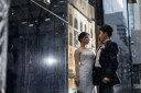 おふたりの表情がなんともクールでかっこいい1枚。ご新婦様のドレスも映えます!