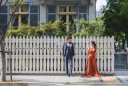 この歩道橋の色がかわいいんですよね。新郎様を見つめる優しい表情の新婦様。とても素敵です!