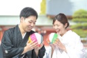 お二人で書かれた習字フォトを毛氈の上に置いて!仲の良さが出ています!
