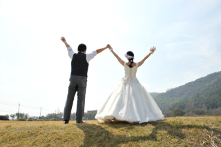自然な表情で撮影していただいたり、新婚とはいえ、なかなか見つめ合う事が普段はないので見つめ合うポーズを要求されたときは二人で恥ずかしそうにして撮って頂いたけど、結果写真が出来上がったのを見てみるととてもいい写真に仕上がっていました。