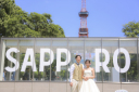 次に2着目へお着替えをして中島公園での撮影をスタート!ヘアメイクチェンジもしてがらっと印象を変えています。
