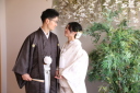 お二人の1着目は、お婿様が優しいブラウンの色味の和装と、お嫁様は淡いピンクの色打掛を選んでいただきました。
