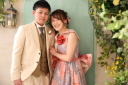 お嫁様には光沢のある黒のカラードレス、お婿様にはチャコールグレーのタキシードをご着用いただきました。