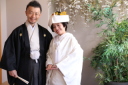 当店オリジナルのモノトーンの掛下をおふたりでご着用いただきました。