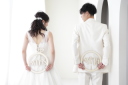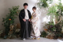 細部にこだわりを感じるコーディネート。お婿様の衣装の色と白無垢にあしらわれたゴールドの刺繍がとてもお似合いです!