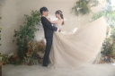 持ち込みアイテムを使用した楽しげなショットです。遊び心をとりいれたおふたりならではのお写真です。