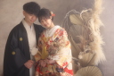 1着目はお嫁様が振袖、お婿様は黒とゴールドの和装を着ていただきました!