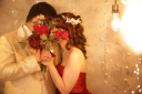 ドライフラワーでお婿様のお顔を隠したショット。おしゃれなお写真を残せます