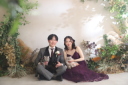 こちらも伝統で外せないカット、正座です。外から来た光でお二人が照らされ、室内は少し暗めにすることで、お二人が際立つように撮影しています。