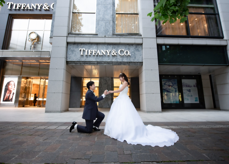 新郎さまからのプロポーズを再現した素敵なショットです。