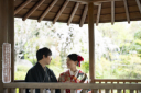 スタジオ撮影の後は、色鮮やかな色打掛にお召し替えしてロケーション撮影へ。お天気にも恵まれました。