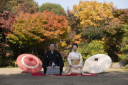 雪の残る目白庭園からの撮影スタートです。少し寒いけれど素敵な笑顔ですね♪