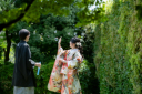 庭園内にある和室『赤鳥庵』は大変予約のとりずらいスポットです。でもこんなに趣あるお写真が残せるんです!「これからもよろしくね」そんな会話が聞こえてきそうですね♡