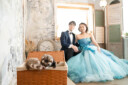 新郎様を後ろからぎゅっとハグするバックハグショットも、ロマンティックなムード満点!