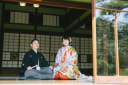山本亭の一番の魅力は、やはり和装と木造邸宅が彩るこのお写真!左側には自然豊かなお庭が広がり、障子や木目がお二人とお気に入りのご衣裳を引き立たせます。